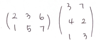 각각 (2 x 3 행렬) x (3 x 2 행렬)이므로 (2 x 2 행렬)이 나올 것을 알 수 있다.